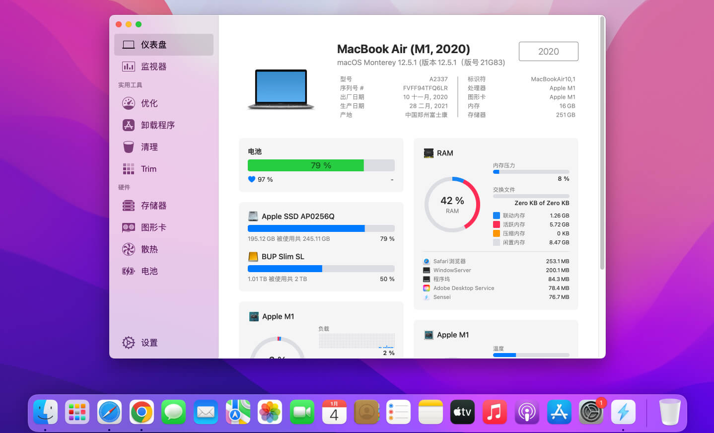 Sensei for Mac v2.0.2 🤖 自动发货 ¥ 2.00 购买数量 优惠券 【更换】 使用 已优惠金额:0.00元 联系方式 选择支付方式 支付宝 👍 系统性能优化及清理工具 Sensei 是新一代的mac优化清理以及系统性能检测工具。拥有带数据图表的仪表板,应用卸载,磁盘系统清理,启动项管理,电池健康管理(包含详细的电池报告),散热详细的硬件信息、图表及报告,温度监控模块(当前版本不支持)、GPU/显示器详细报告、性能优化、CPU监控、RAM内存监视、磁盘监视、风扇控制、磁盘基准、电池健康分析、启动速度优化、分区图管理等等功能。