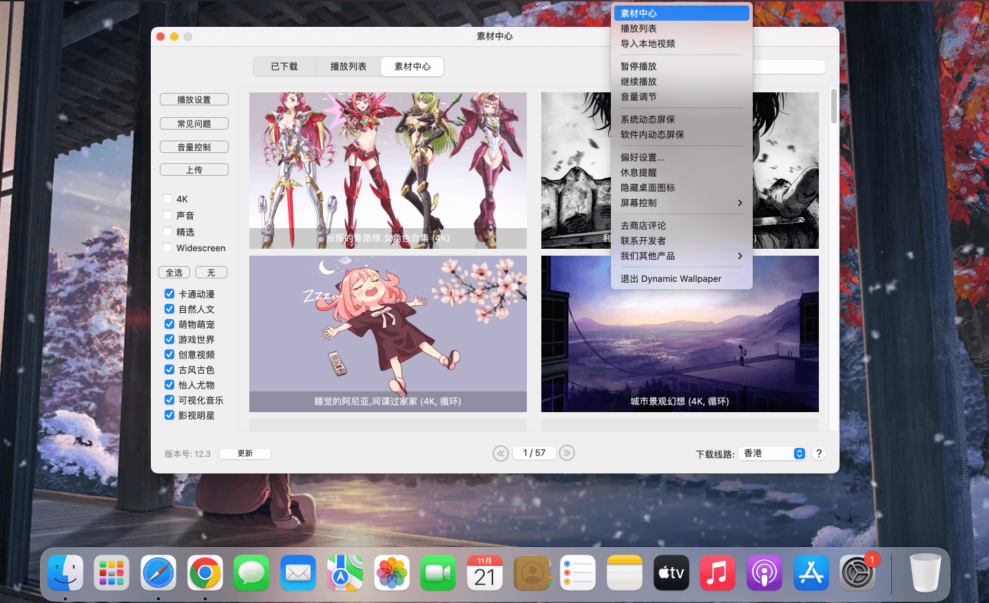 Dynamic Wallpaper Engine:动态壁纸引擎, 告别单调的静态壁纸,拥抱活泼的动态壁纸。既可选择App内现有视频素材,也可导入本地视频,同时可以将视频设置为您的电脑屏保。